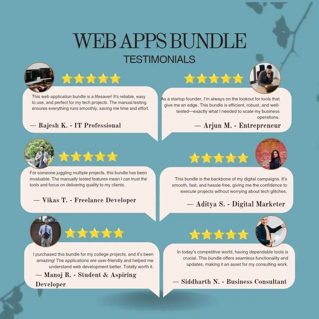SaaS Apps: Subscription-ready platforms, analytics tools, automation apps.